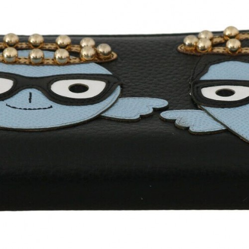 Dolce & Gabbana Black Blue Leather #DGFAMILY Zipper Continental Wallet