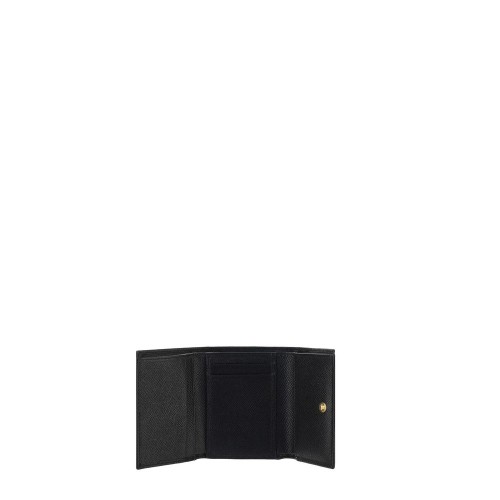 Calfskin Leather by Dolce & Gabbana, button closure, mettalic patch with engraved logo on front, zip pocket on back, internal slots for cards.