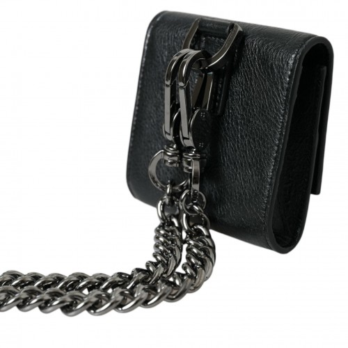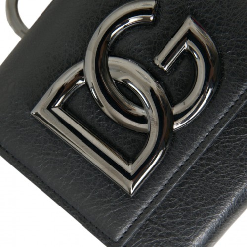 Dolce & Gabbana Black Lamb Leather Logo Card Holder Chain Strap Bags