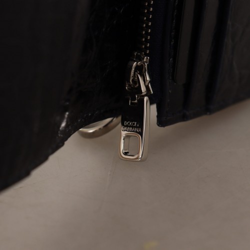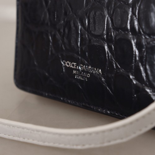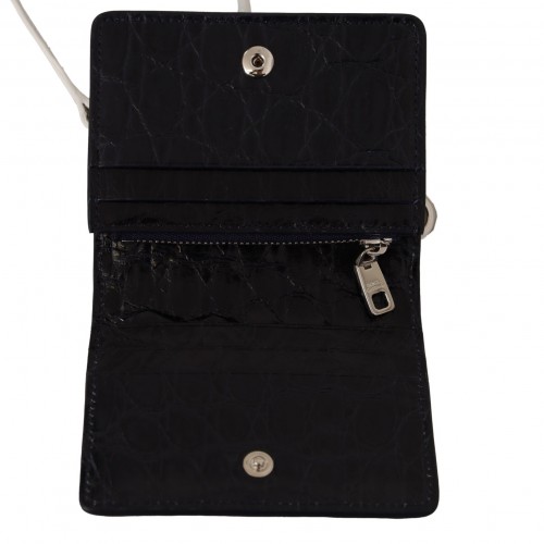 Discover the epitome of luxury with this 100% Authentic Dolce & Gabbana bifold wallet, crafted from exquisite Caiman leather. Its rich blue hue and contrasting white removable shoulder strap make a sophisticated statement. Designed for the discerning individual, this wallet offers ample space for your cards, coins, and bills, while flaunting iconic logo details and Italian craftsmanship.
