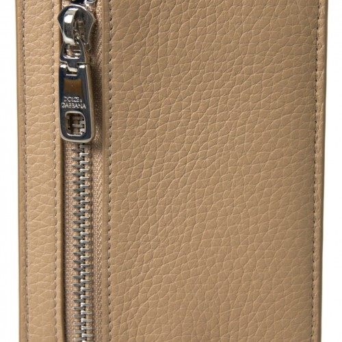 Dolce & Gabbana Elegant Beige Leather Cardholder Wallet