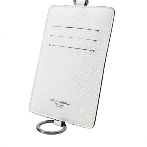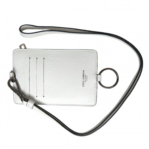 Absolutely stunning, 100% Authentic, brand new with tags Dolce & Gabbana white leather lanyard cardholder featuring logo-embossed patch to the rear, lanyard strap, side zip fastening, card slots and ring fastening.