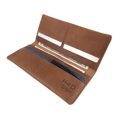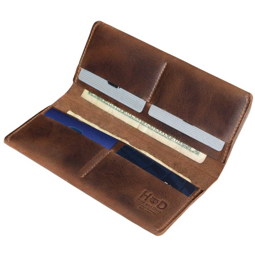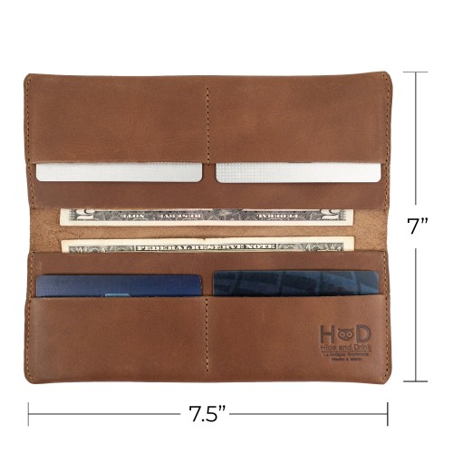 - DURABLE DESIGN: This wallet is guaranteed to last a lifetime! With its thick leather construction and fold-over configuration, Hide & Drink guarantees the safety of everything you store inside of it. This wallet can hold both bills and cards inside of its classically simple design. The Full-Grain Leather that is synonymous with Hide & Drink is both rustic and gorgeous in its minimalistic presentation. This wallet is sure to stay in style for as long as it is guaranteed to last!