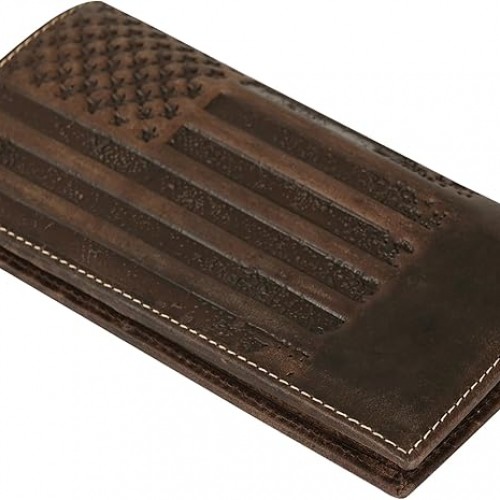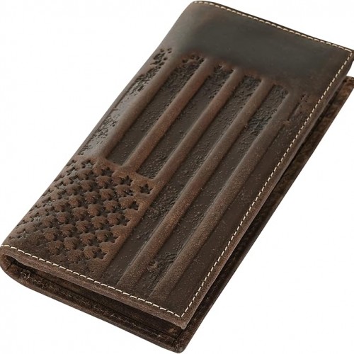 - STYLISH & GIFTABLE – Our western wallet boasts meticulously crafted saddle-stitch edges and a sleek large American Flag stamped & pressed onto leather, minimalist design that embodies both style and substance. Fashioned from top-quality materials, it’s not only a statement of elegance but also a perfect gift for a boyfriend, husband, father, birhtday gift, father’s day and those who appreciate fine craftsmanship and functionality combined.