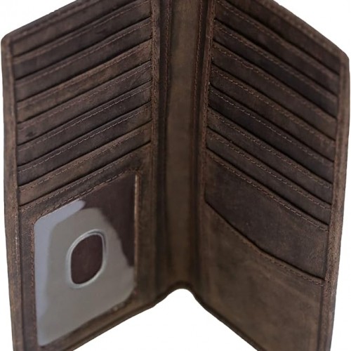 - Ample Storage in Slim Profile: Despite its sleek design, this leather checkbook wallet boasts 16 credit card slots and an easy-access ID window, providing plenty of space for all your essentials.