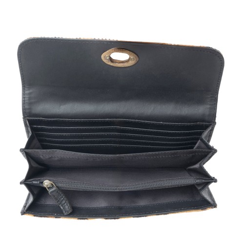 The Myra Enchanted Wallet blends Western charm with everyday functionality. This cowgirl wallet is crafted from genuine leather with a stunning hairon hide accent. Designed for security and convenience, it features an inside zipper pocket and credit card compartments to keep essentials organized. The adjustable leather strap allows versatile wear, while a hidden back zipper pocket secures mini rodeo necessities. A must-have for fans of western leather wallets!