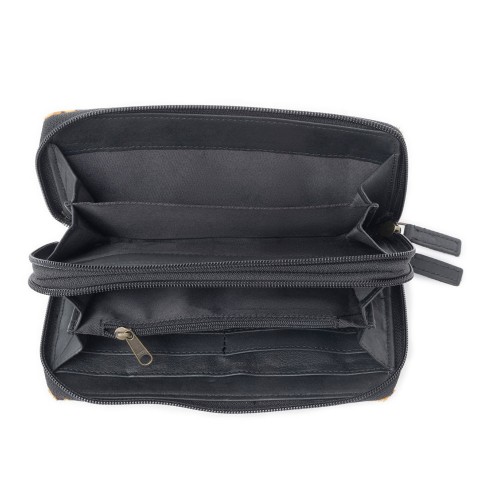 This cowgirl wallet presents a bold blend of Western style and everyday convenience. Crafted from genuine leather with a striking hairon leather accent, the rodeo wallet is built for those who embrace country living. Designed with two spacious compartments, it easily fits your phone and essentials, while the inside credit card compartment and zipper pocket keep everything organized. With an RFID protector for security, this wallet is the perfect companion for your next Western adventure.