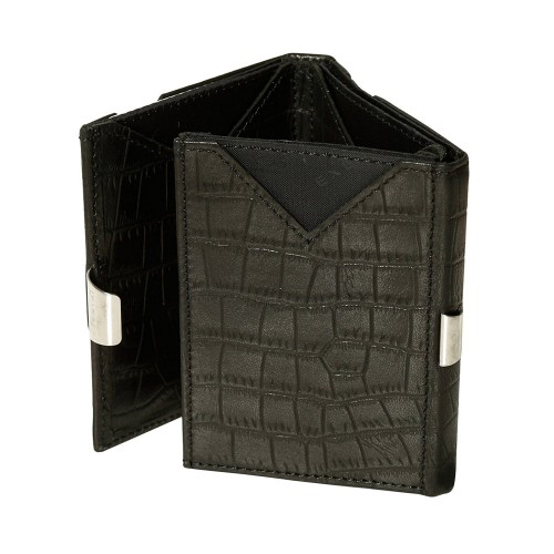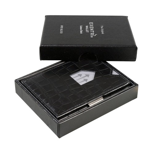 Exentri Trifold Wallet Caiman Premium Leather with Stainless Locking Clip Stylish Sophisticated Compact