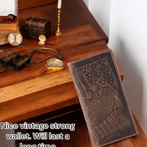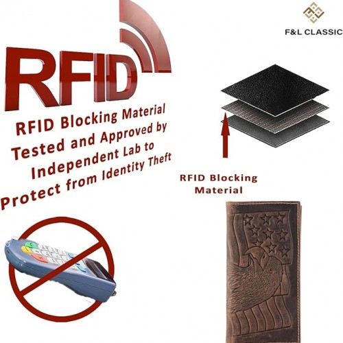F&L CLASSIC Men’s RFID Vintage Look Genuine Leather Long Bifold Wallet Checkbook Wallets,brown eagle flag,240-101