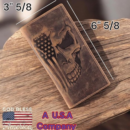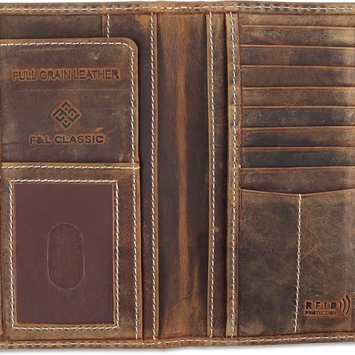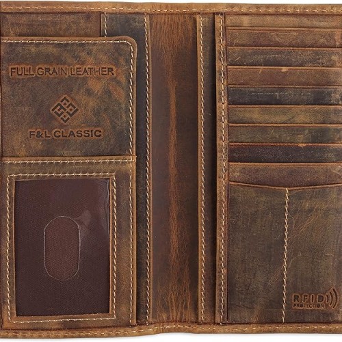 F&L CLASSIC Men’s RFID Vintage Look Genuine Leather Long Bifold Wallet Checkbook Wallets,brown eagle flag,240-101