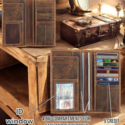 - This is real leather wallet checkbook cover has 9 slots for cards,ID window,4 large capacity compartments for money,checkbook,