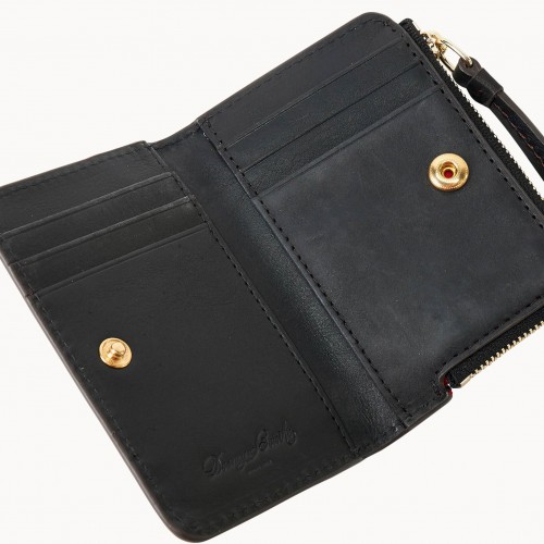 Six credit card slots. Two pockets. One zipper pocket. Snap closure.