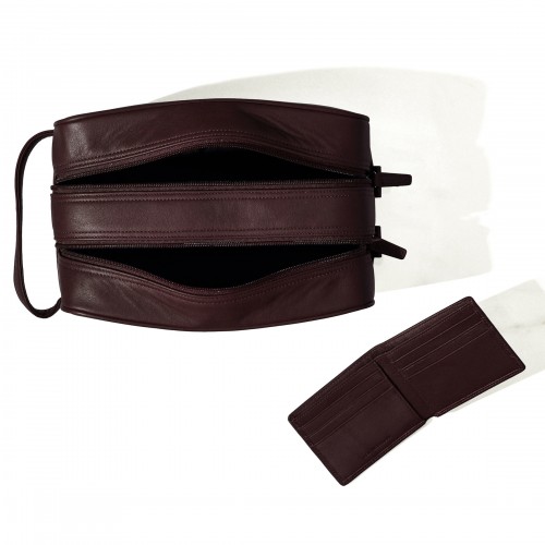 The men in your life deserve the best of the best. Our For Him Gift Set combines our bestselling Double Zip Toiletry Bag with the best rated Thin Bifold Wallet. Organize, and declutter his countertop with our versatile Double Zip Toiletry Bag, made with two zipped, water-resistant lined compartments to prevents leaks and spills. Our men’s Thin Bifold Wallet is a customer favorite and consistently rated as a Wirecutter’s Pick for best men’s slim wallet. The slender silhouette comfortably fits in his front or back pocket with 6 card slots, a bill compartment, and 2 interior pockets for receipts or spare cards for all the usual storage. Both styles come packaged together in our suave signature bronze gift box with lux microsuede lining to make gift wrapping easy and your man feel like a first place gold medal.