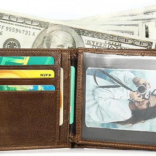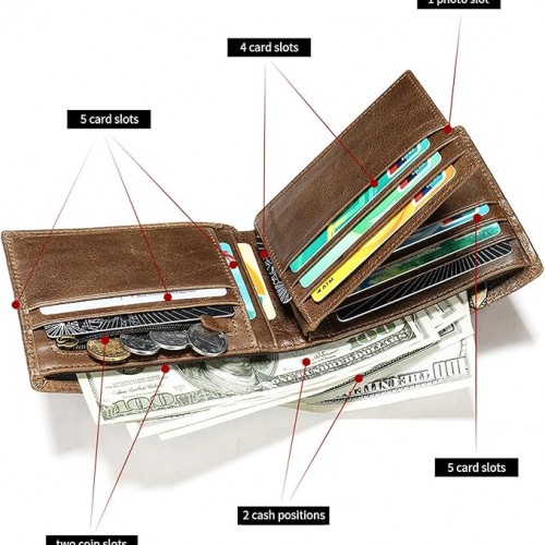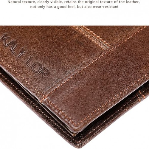 - Retro Style: Classic bifold wallet design with a snap closure, featuring a coffee-brown leather finish, perfect for everyday use.