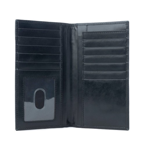 Cowboy leather wallet design meets rugged masculinity in the Myra Wrangler’s Mark Hairon Leather Wallet for Men. Crafted in bold black leather with striking hairon panels and detailed stud accents, this men’s leather wallet reflects unshakable western grit. A silver concho on the front enhances its ranch-inspired charm, while the tall silhouette keeps it sleek and practical. Inside, multiple card holders provide organized storage without adding bulk, making it an everyday essential.