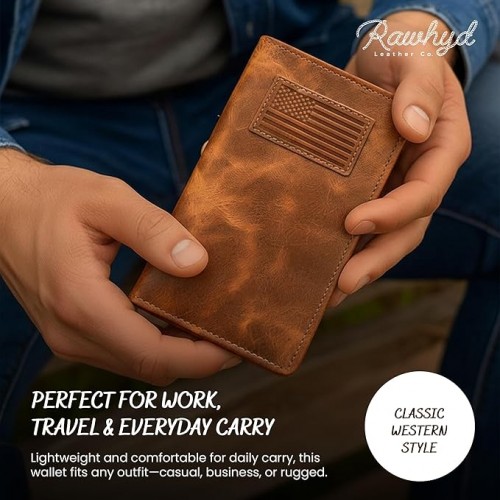 - Premium Craftsmanship: Crafted from full-grain leather, this leather cash wallet’s patina deepens with time, adding character to the rustic look by ageing with grace; this men’s western wallet ensures lasting use by adding style to your everyday carry
