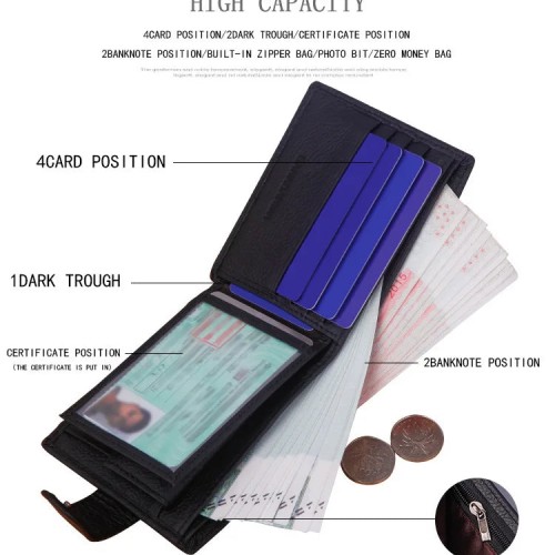 Genuine Leather Men Wallets Classic Free Engraving Name Zipper Purse Man Card Horder Famous Brand Quality Male Wallet For Boy