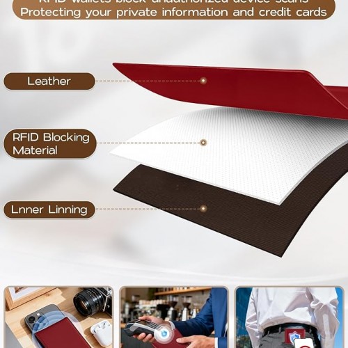 - RFID SECURITY:RFID wallets block unauthorized device scans,protecting your private information and credit cards.Engineered specifically to block 13.56 MHz or higher RFID signals to protect the valuable information and privac.