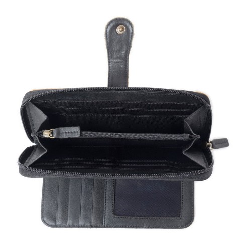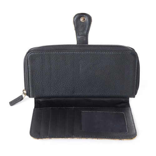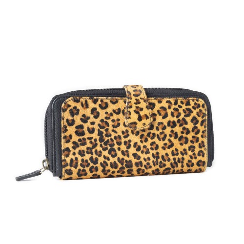 Effortlessly stylish and secure, this Myra wallet is the perfect companion for a Friday night out or a casual rodeo getaway. Made from genuine leather with a chic hairon hide accent, this leather zipper wallet blends elegance with practicality. Its flap design, snap closure, and zippered compartment ensure your essentials stay safe, while the RFID protection adds an extra layer of security. With multiple credit card slots and an inside zipper pocket, this wallet offers plenty of space for your cowgirl belongings.