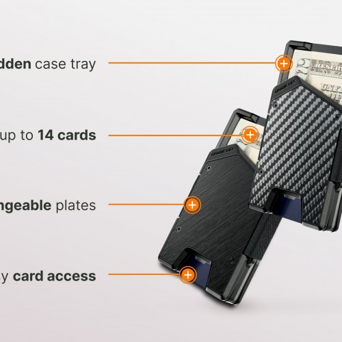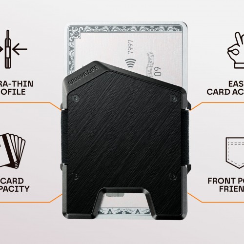 The Groove Wallet® Stealth is the ultimate blend of grit, simplicity, and everyday performance. Crafted from aerospace-grade aluminum and built with an easy fan-out card system, it keeps up to 14 cards secure without the bulk. A hidden cash tray keeps your bills out of sight but ready when you need them.