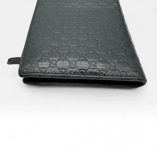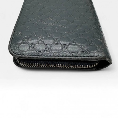 Gucci wallet made of dark blue leather, elongated in Monogram design – stylish vintage streetwear look for everyday life and special moments.