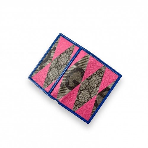 Gucci “Rhombus” Bi-Fold Wallet from 2020’s collection. Wallet features GG monogram and geometric print to coated canvas exterior, blue leather interior, bi-fold opening and multiple interior slots. Wallet is in like-new condition with no visible signs of wear. Original box, dust bag and certificate of authenticity courtesy of Entrupy included. Made in Italy.