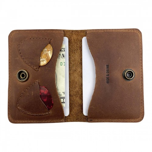 - FASHIONABLE & FUNCTIONAL: Conveniently store your cards, identification, cash and guitar picks in this beautiful Guitar Pick Bifold Wallet handmade from thick, full grain leather. With two side pockets and two pick pockets, a musician or guitar player will be ready to play anywhere. Featuring a slim design, this wallet can fit in your pocket or bag without adding extra bulk or weight. Great for everyday use, travel, or going out. Made from durable materials, this wallet will last you many years.