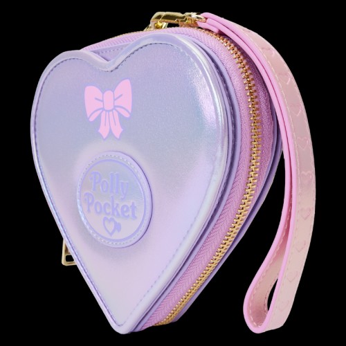 Wallet zips closed. Other wallet features include four slots for holding cards, a clear slot for holding your ID, antique gold metal hardware, vegan leather (polyurethane), and gold foil and printed details. Note the coordinating lining.