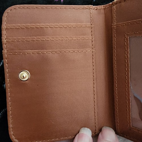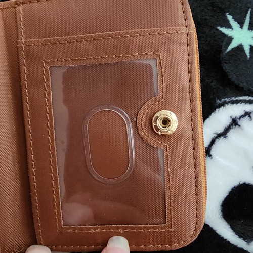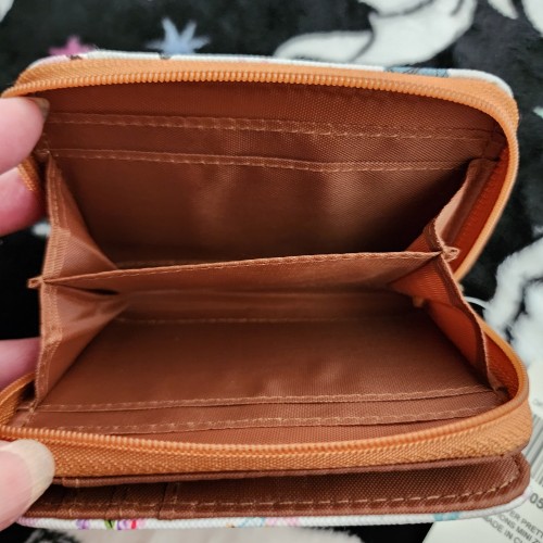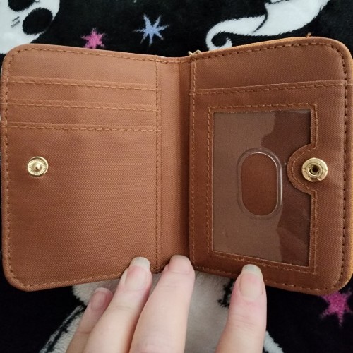 Awesome Harry Potter Potions Mini Wallet. It has a snap closure in the front with slots for credit cards and an ID slot. There is a zipper compartment in the back with more slots for credit cards and an ID slot on the back of the wallet. Great for everyday use.