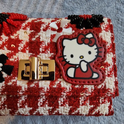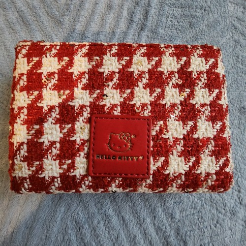 Awesome Loungefly Hello Kitty Red Plaid Flower wallet. It has a turn opening lock. It has slots for credit cards and a ID slot. It also has a large slot for bills. Great for everyday use.