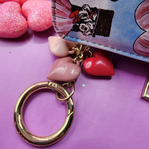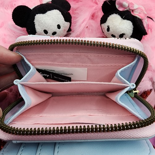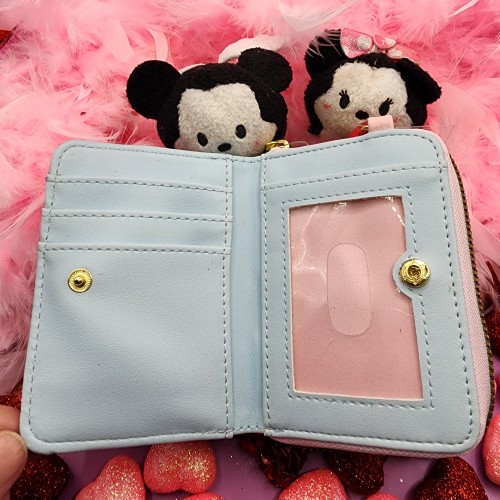 Her Universe Disney Mickey and Minnie Mouse Valentine’s wallet. This wallet is super cute. It has an all around zipper closure in the back that holds cash, cards.. It has a snap closure on the front that opens to credit cards slots and ID slot. It has 3 heart charms on the zipper and a key chain holder for your keys. Great for everyday use and short trips