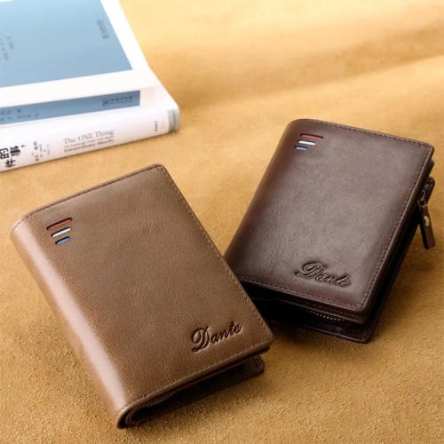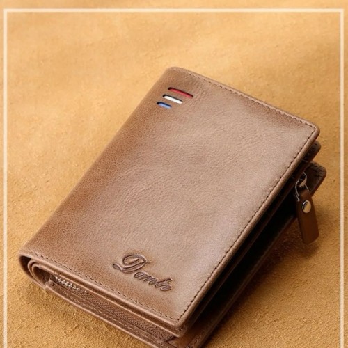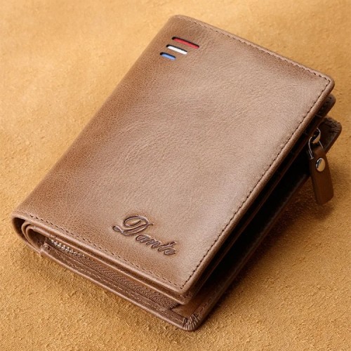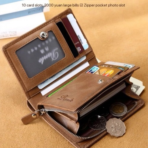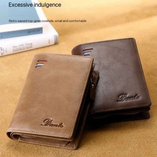 New Men’s Short RFID Anti-Theft Brush Head Layer Cowhide Wallet New Style Fashion Large Capacity Retro Card Bag Zipper Purses