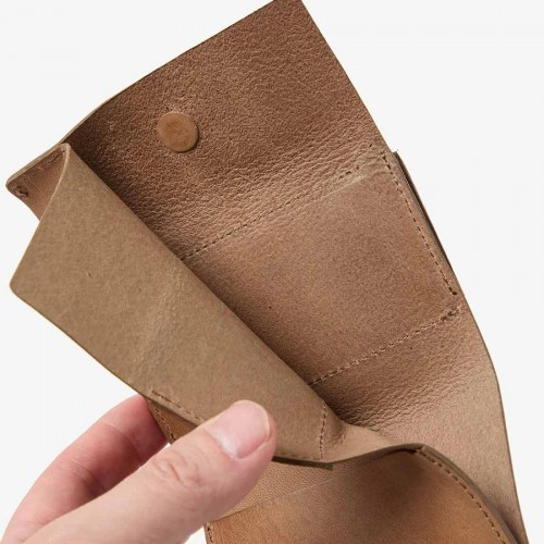 This compact tri-fold wallet allows you to store coins, bills, and cards separately.