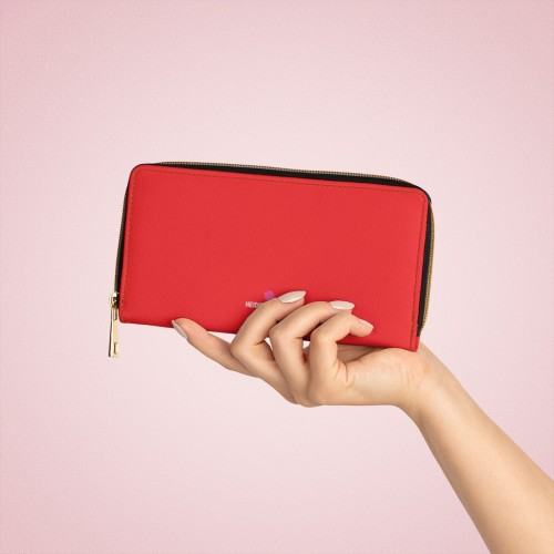 Hot Red Color Zipper Wallet, Solid Red Color Long Compact Designer Premium Quality Women’s Wallet