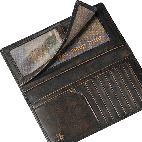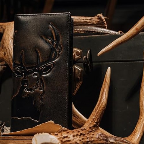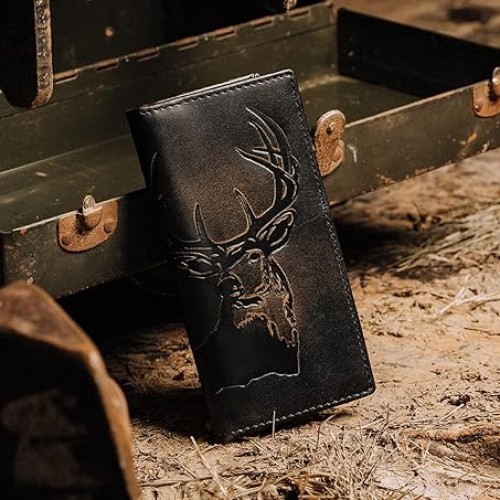 House of Jack Co. Deer Long Bifold Wallet for Men, Full Grain Cowhide Leather Rodeo Wallet, Hunting & Outdoorsman Tall Wallet, Black