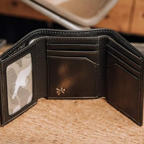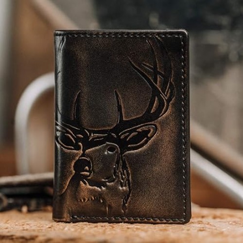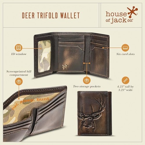 House of Jack Co. Deer Trifold Wallet for Men, Leather Hunting Wallet with Full-Grain Leather, Extra-Capacity Organization, Black