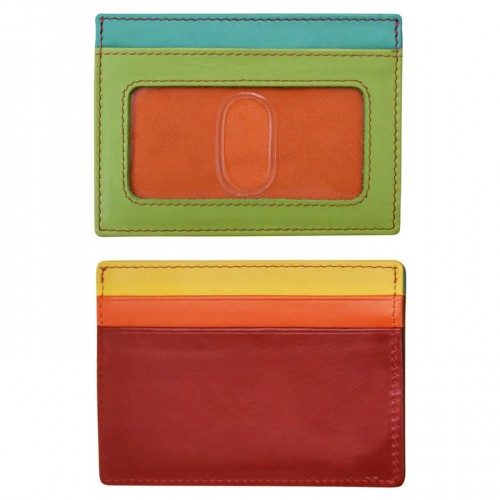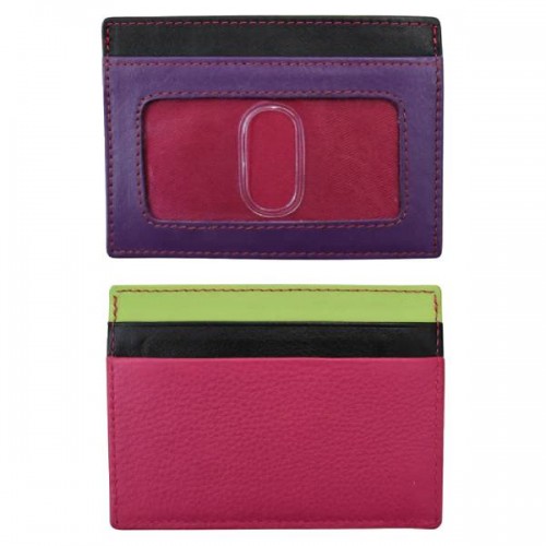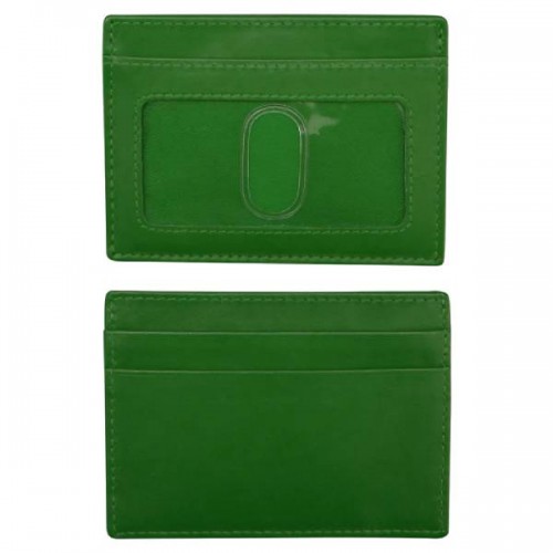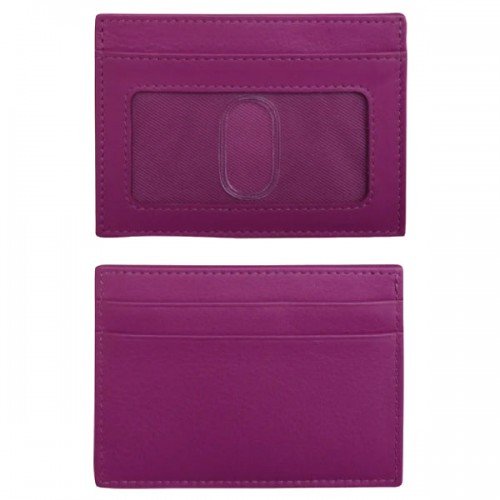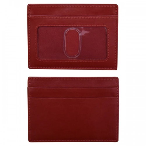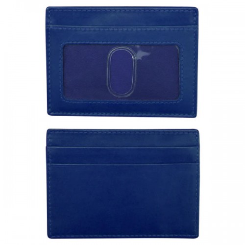 The New York Leather Credit Card/ID Holder is a leather ID/credit card holder with RFID blocking lining and the exterior has a front ID window, back two credit card slots, and one top entry slide pocket.