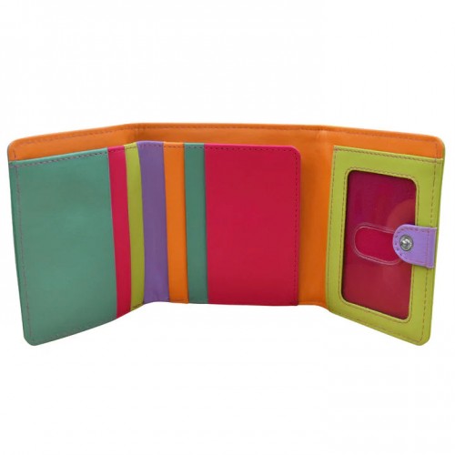 This Color Block Tri-Fold Mini Wallet is the perfect combination of style and function. This wallet is crafted from high-quality leather in a multicolor design and features RFID-blocking lining to keep your information secure. The wallet features a back zip compartment, interior ID window, six credit card slots, and open pocket for currency.