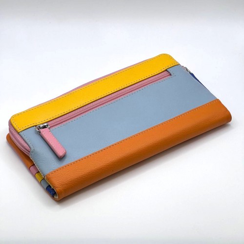 - Genuine leather wallet with zip around phone pocket and tab closure