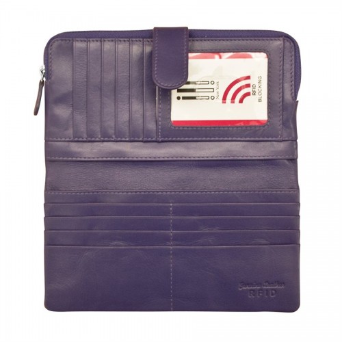 Women’s ILI, Double Zip Smart Phone Wallet. Genuine leather. zip around phone pocket and tab closure Exterior- back zip pocket Interior- I.D. window 14 credit card slots and bill pockets