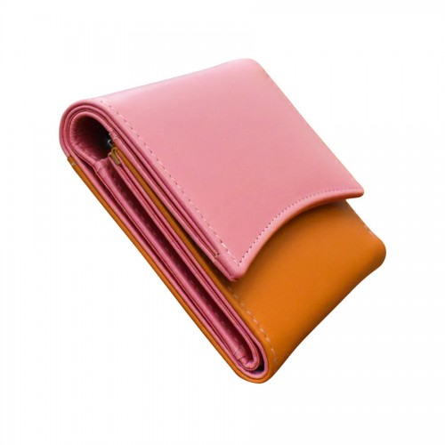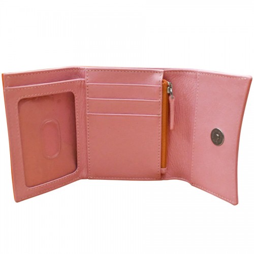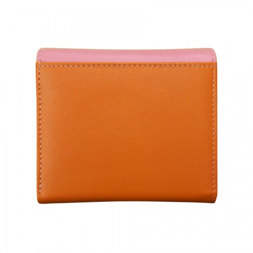 ILI New York Leather RFID Two Tone Pocket Wallet – Flamingo Pink/Papaya