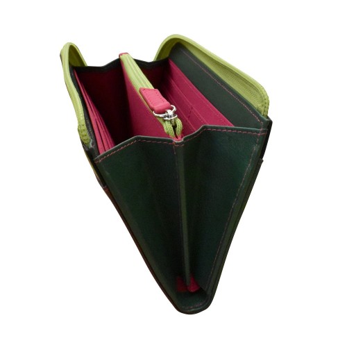 ILI New York Leather RFID Zip Wallet w/Gusset – Forest Multi