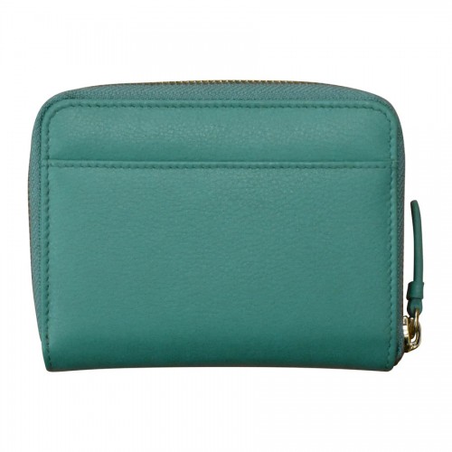 ILI New York RFID Leather Corner Detail Small Zip Wallet – Turquoise/Saddle