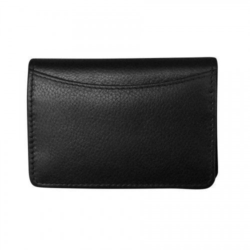 Lightly grain leather card holder RFID blocking lining Back slip pocket I.D. window with thumb slide Credit card slot and open pocket to hold cards. Made in India.