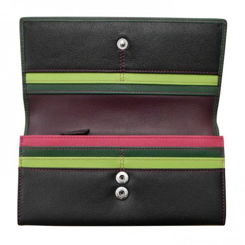 Smooth leather flap wallet with two snap buttons