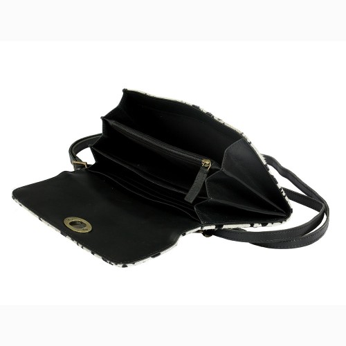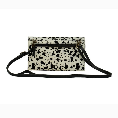 Complement your playful look with this Dalmatian print Influence wallet. It has a roomy interior and adjustable shoulder straps to accommodate your length preference