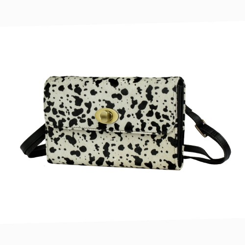 Complement your playful look with this Dalmatian print Influence Wallet. It has a roomy interior and adjustable shoulder straps to accommodate your length preference