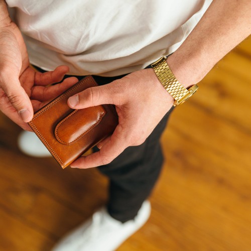 Dolce Italia Front Pocket Wallet is minimalist in profile, but maximal in function and usability. This Italian-made bifold men’s wallet is a hybrid bi-fold + money clip that is meant for front-pocket carrying. Four card pockets and a deep stash pocket hold all your daily needs, while the external money clip keeps your cash close at hand. Beyond its function, this piece is highlighted with our beautiful Dolce Leather, bringing it a distinct look and decadent feel.