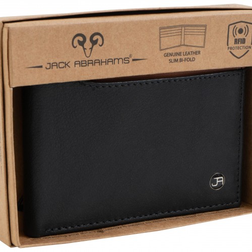 Jack Abrahams Goat Nappa Leather Bi-Fold Top Front Wallet Black/Cognac