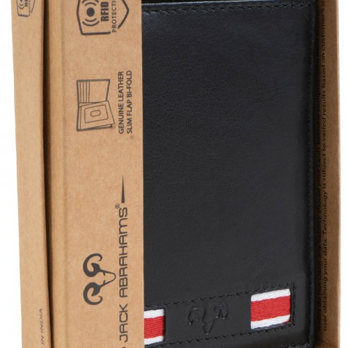 Jack Abrahams Goat Nappa Leather Bi-Fold Wallet with Flip ID Case Black